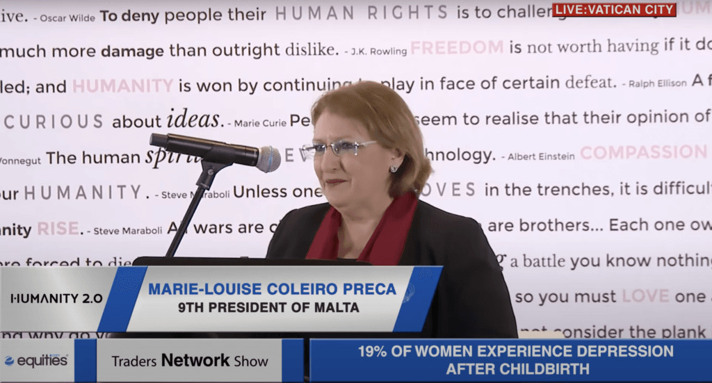 Marie-Louise Coleiro Preca the 9th President of Malta Delivers Keynote Speech at Humanity 2.0 ESG News • January 8, 2022 Marie Louise Coleiro Preca the 9th President of Malta delivers keynote speech on maternal health at Humanity 2.0 (Vatican City) HIGHLIGHTS 19% of women experience depression after death 10% of women experience...