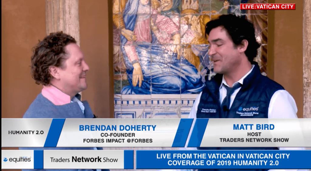 Brendan Doherty Co-Founder of Forbes Impact Interview with Matt Bird at Humanity 2.0 ESG News • January 7, 2022 Brendan Doherty, Co-Founder of Forbes Impact at Forbes interview with Matt Bird at Humanity 2.0 (Vatican City)