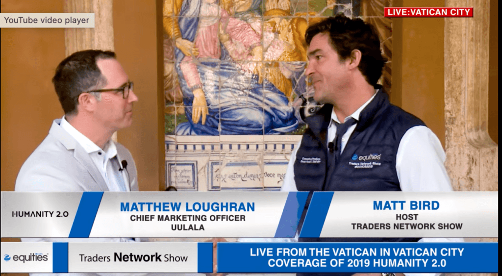 Matthew Loughran CMO of Uulala Interview with Matt Bird at Humanity 2.0 ESG News • December 6, 2021 Matthew Loughran, CMO of Uulala discusses technology and capital market with Matt Bird at Humanity 2.0 (Vatican City)