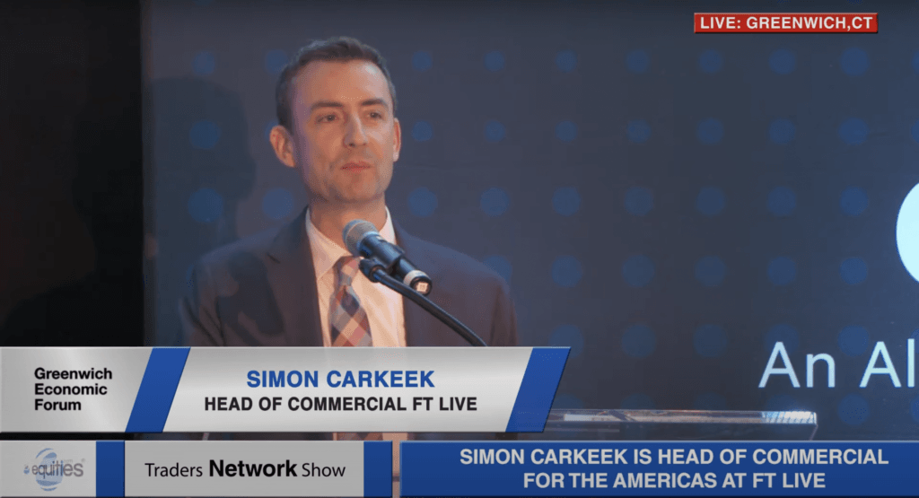Simon Carkeek Head of Commercial for FT Live Delivers Closing Remarks at Greenwich Economic Forum ESG News • December 3, 2021 Simon Carkeek, Head of Commercial for FT Live delivers closing remarks at Greenwich Economic Forum (Greenwich, CT)