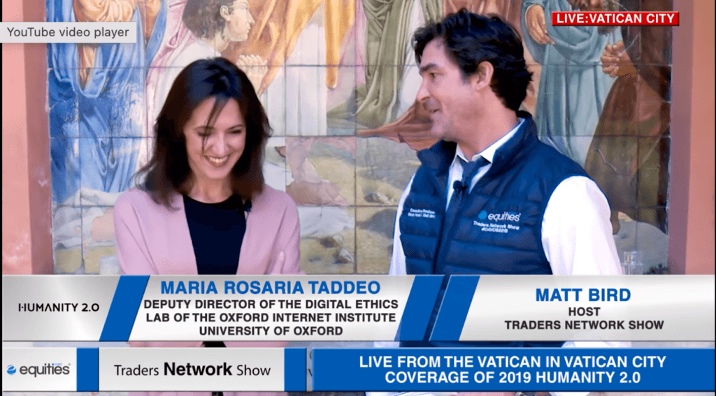 Maria Rosario Taddeo Deputy Director of Digital Ethics Lab for University of Oxford interview with Matt Bird at Humanity 2.0 ESG News • December 6, 2021 Maria Rosario Taddeo Deputy Director of Digital Ethics Lab for University of Oxford interview with Matt Bird at Humanity 2.0 (Vatican City)