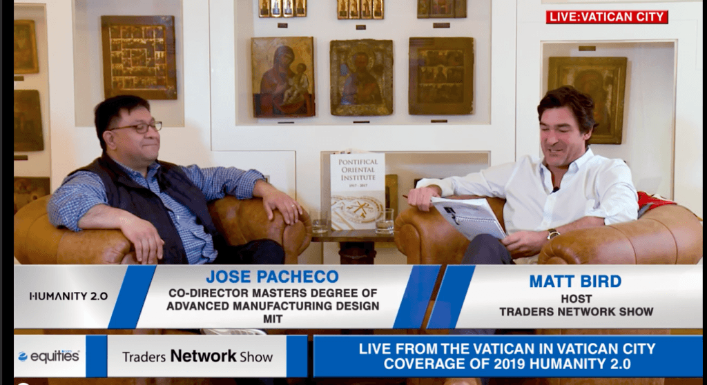Jose Pacheco Co-Director Advanced Manufacturing Design at MIT Interview with Matt Bird at Humanity 2.0 ESG News • December 6, 2021 Jose Pacheco, Co-Director Advanced Manufacturing Design at MIT interview with Matt Bird at Humanity 2.0 (Vatican City)