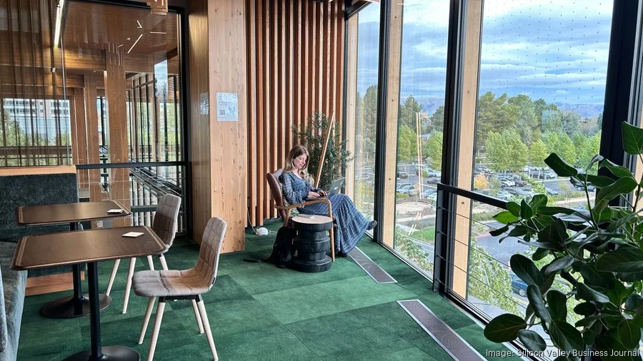 The building prioritizes employee wellbeing with biophilic design elements, such as exposed timber interiors, ample natural light, and expansive views of Northern California landscapes. Features include:
