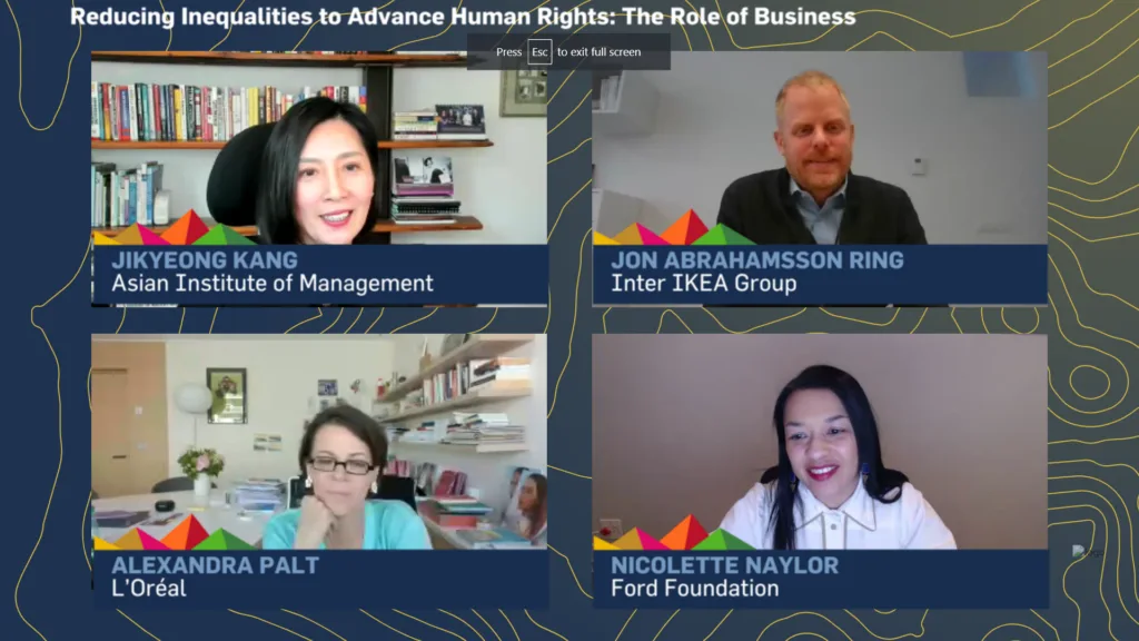 Featuring Jikyeong Kang, President and Dean, MVP Chair in Marketing, Asian Institute of Management; Jon Abrahamsson Ring, CEO, Inter IKEA Group; Alexandra Palt, Fondation L’Oréal; Nicolette Naylor, International Program Director, Gender, Racial, and Ethnic Justice at the Ford Foundation.